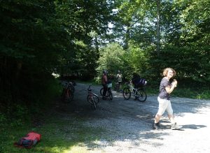 Nachdem wir uns alle vor dem Schulparkplatz in Rott versammelt hatten, fuhren wir mit dem Rad los Richtung Lagerplatz.